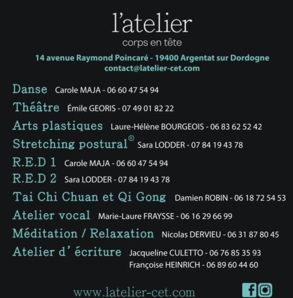 Pour tous renseignements supplémentaires avant inscription, nos professeurs sont joignables par mail (contact@latelier-cet.com) ou par téléphone (voir contacts sur le site) en semaine entre 9h et 19h.